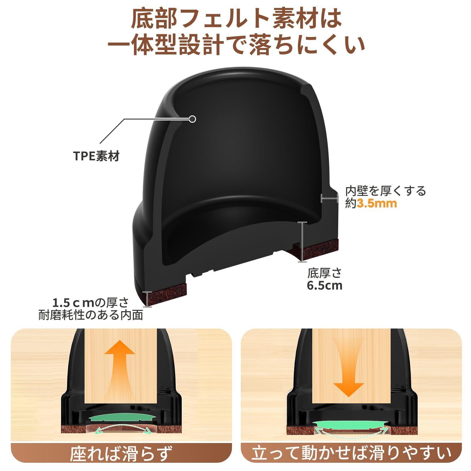 Pemiro-家具用脚-椅子足カバー 8個入り キズ防止 騒音防止 滑り止め 椅子足キャップ フェルトボトム 椅子脚カバー テーブル脚カバー 机足カバー 家具?ソファ?床?タイル傷防止 シリコーン製 簡単装着(L-ブラック) | 飛揚商事