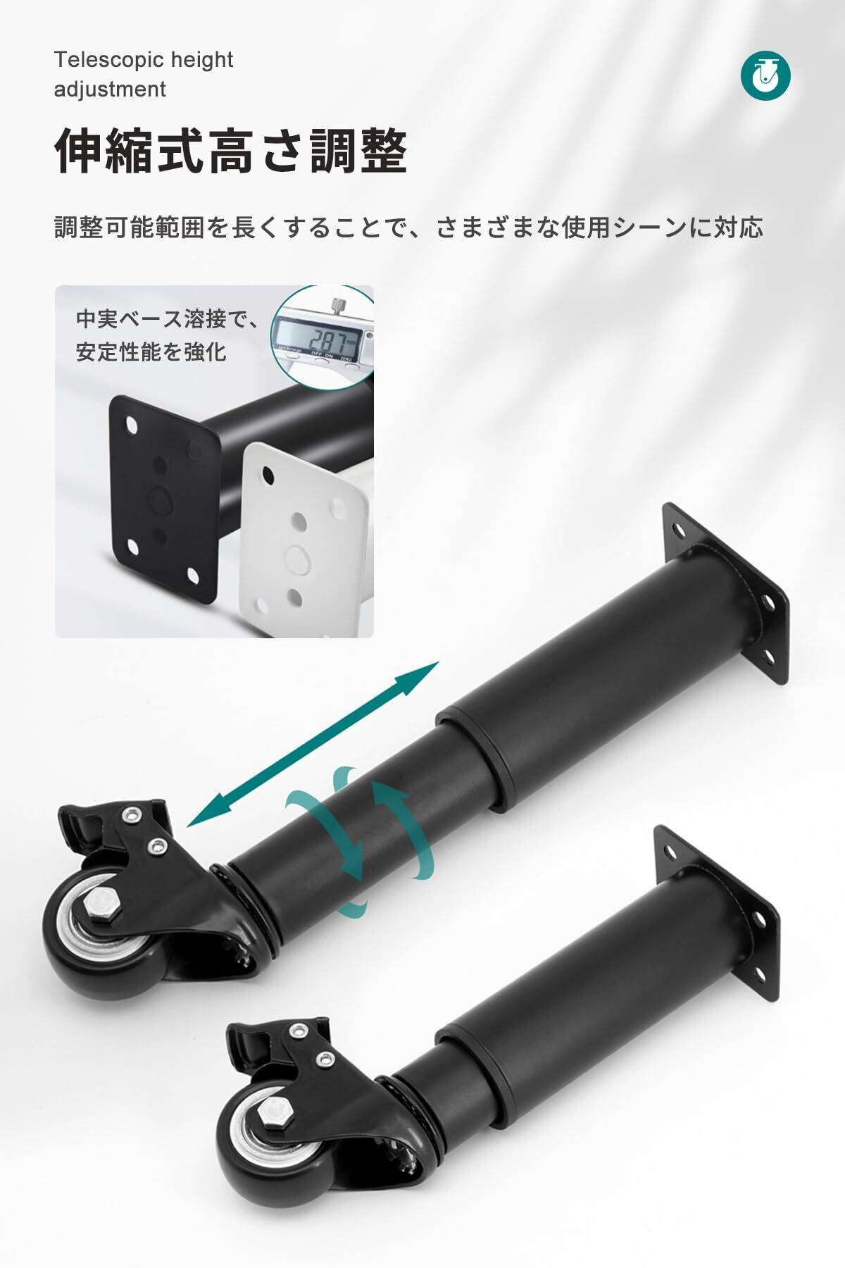 Nopera-家具用脚-家具用キャスター diy 家具用脚 キャスター付き 360度回転 ブレーキ付き 高さ調節可能 家具用脚 防振・静音 脚付き家具用 家具の移動が楽になる (黒, 18cm-26cm) | 飛揚商事