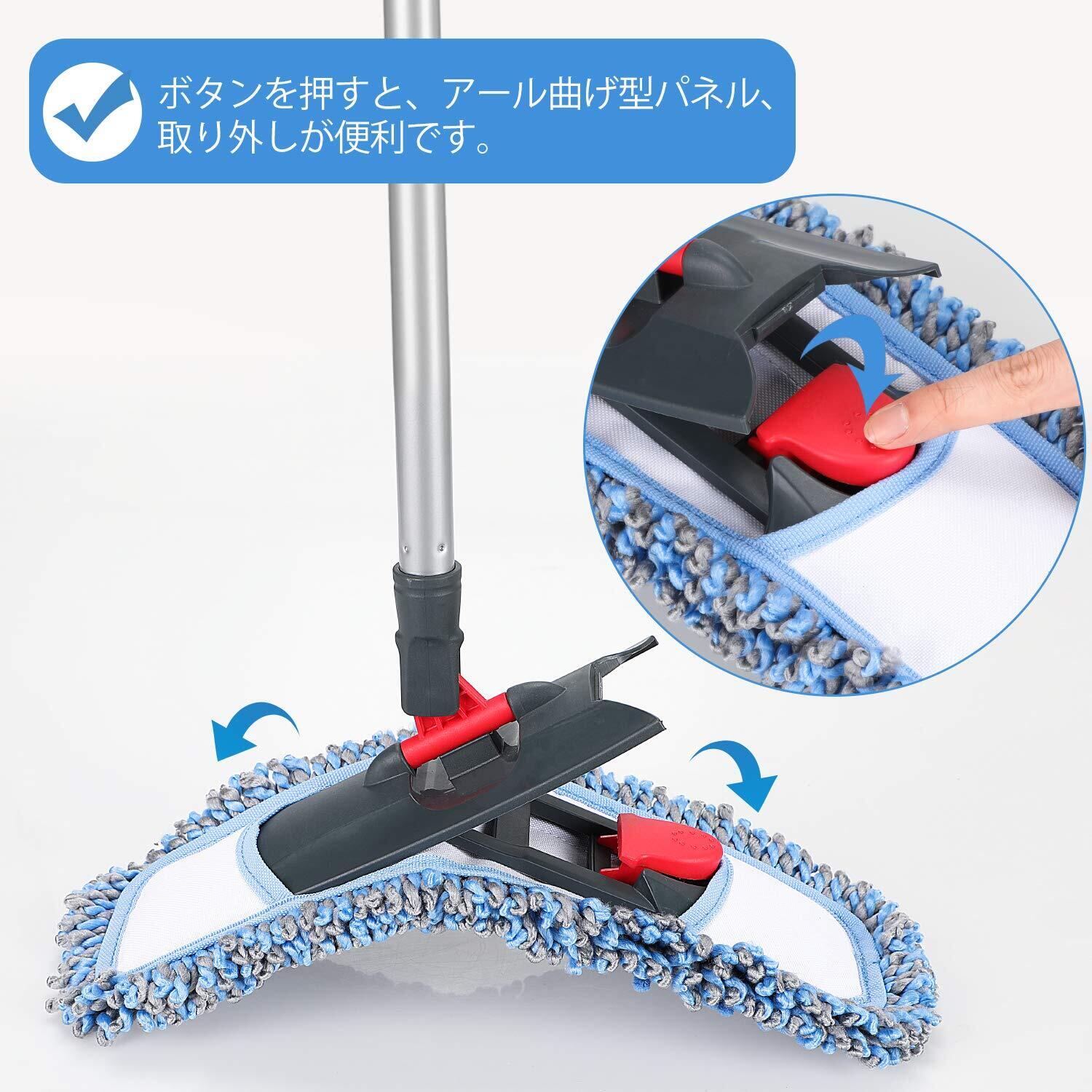 【床掃除モップパッド・乾湿両用】①「シェニール糸クロス」:クロスにはシェニール素材を採用され、吸水性や耐摩耗性等にも優れていて床や壁に優しいし、特に木製の床面を傷つけないです。手洗いや洗濯機洗いも可能であり、もっと便利です。 ②「綿系クロス」:クロスは多くの粗い綿系を組み立て、場所に限らず、フローリングや床はもちろん、ベッドの下の隙間や階段などもきれいに掃除できます。