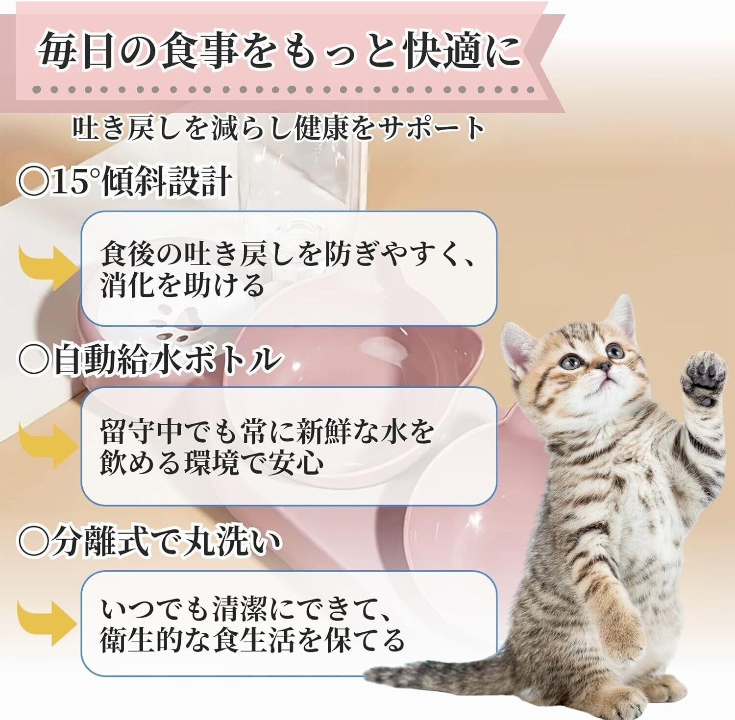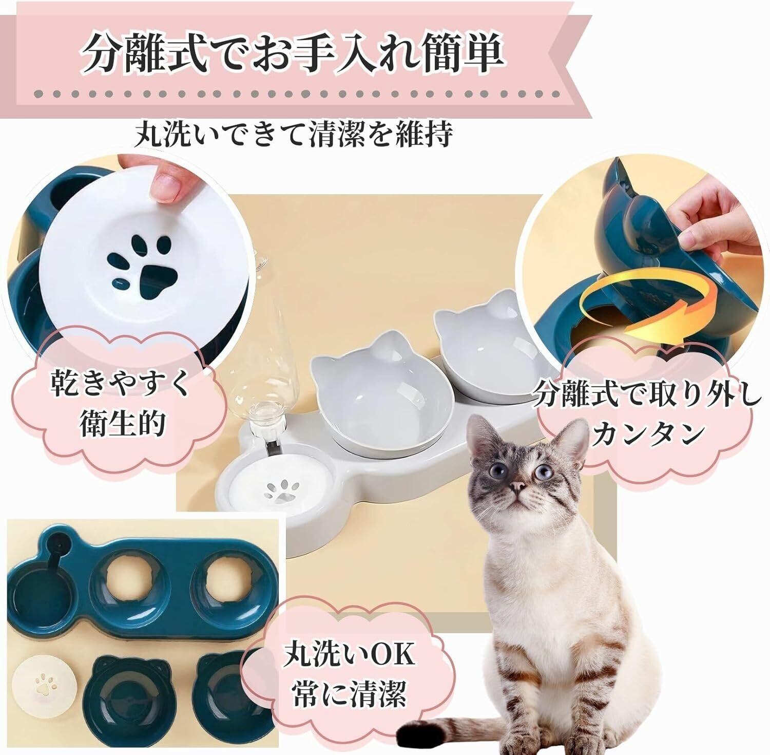Safumi-ペット用自動給餌用ボウル-給水ボトル セット 猫 ペット 小型犬 用 自動 給餌器 給水器 健康維持 グッズ