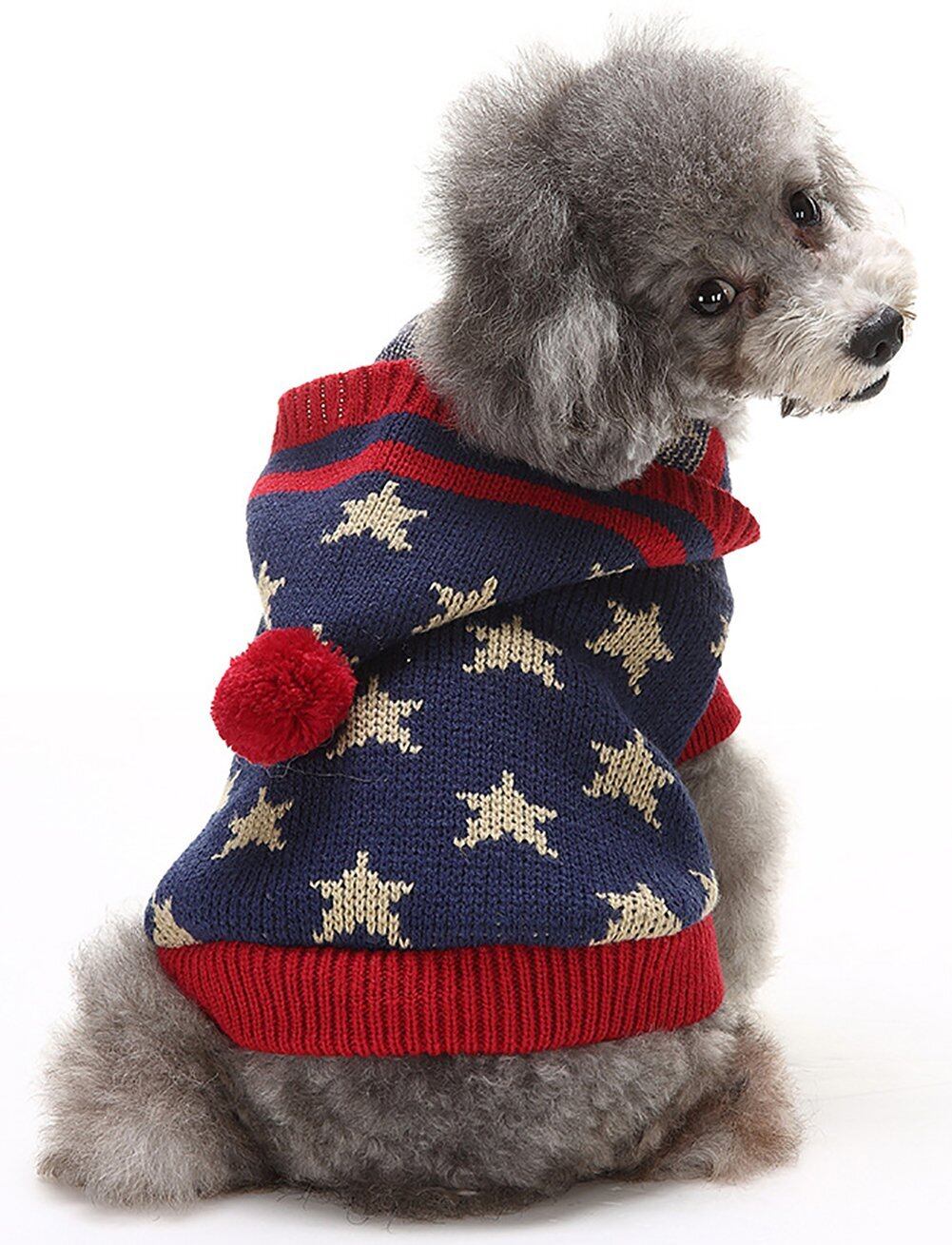 Furoke-ペット用被服-誕生日 聖夜 秋冬 ペットウェア犬服猫服 おしゃれ ペットウェア ドッグウエア 帽子付き 小型犬用品 かわいい犬の服 ニットセーター トイプードル/ダックス/マルチーズ/シュナウザー/シーズー等の小型犬 ネイビー M