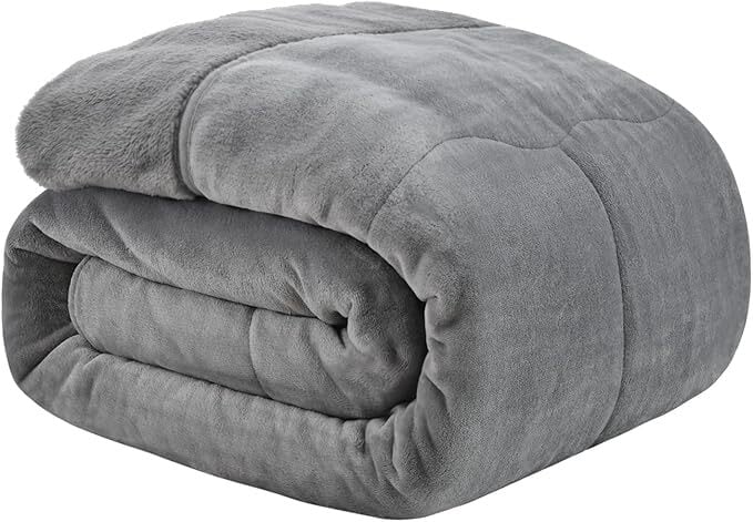 Paneku-ベッド用毛布-あったか毛布 二枚合わせ 掛け毛布 厚手 真冬もうふ ふわふわ フランネル ブランケット 吸湿発熱 静電防止 襟付き 丸洗いOK (グレー シングル・140X200cm) | 飛揚商事