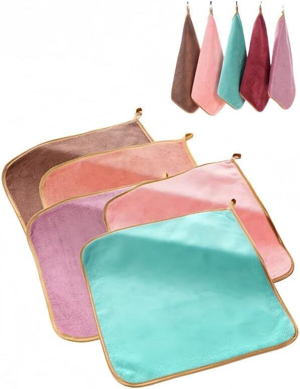 Tanuko-織物製顔ふきタオル-メイク落としタオル クレンジングタオル 洗顔クロス マイクロファイバー ソフト 吸水 速乾 可愛い5色セット M03