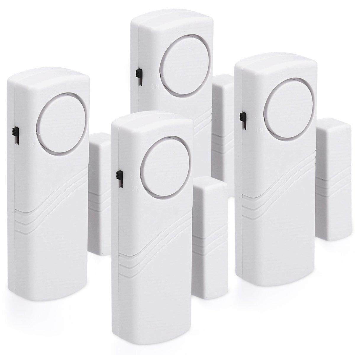 Muzane-ベル(警報装置)-防犯ブザー 4個セット 護身用グッズ ドアベル - 防犯 防犯グッズ 窓 アラーム ドアチャイム - ブザー 盗難防止 防犯センサー 網戸 ホワイト