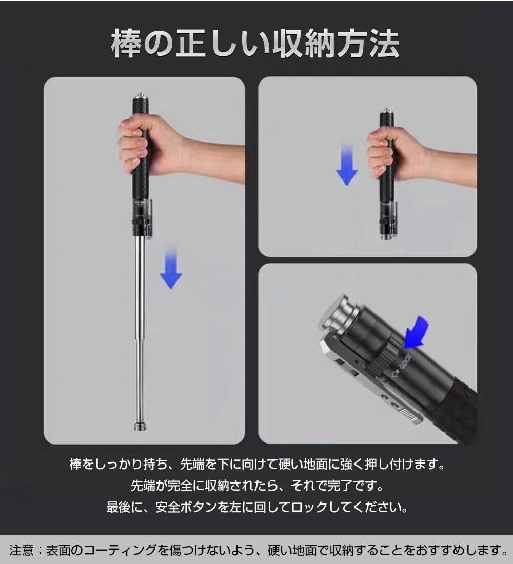 Ganero-警棒-自動巻き取り式伸縮トレッキングポール 軽量 頑丈 アウトドア 車載用 防身用 携帯便利な折りたたみウォーキングスティック 登山・キャンプ ハイキング 自己防衛対応
