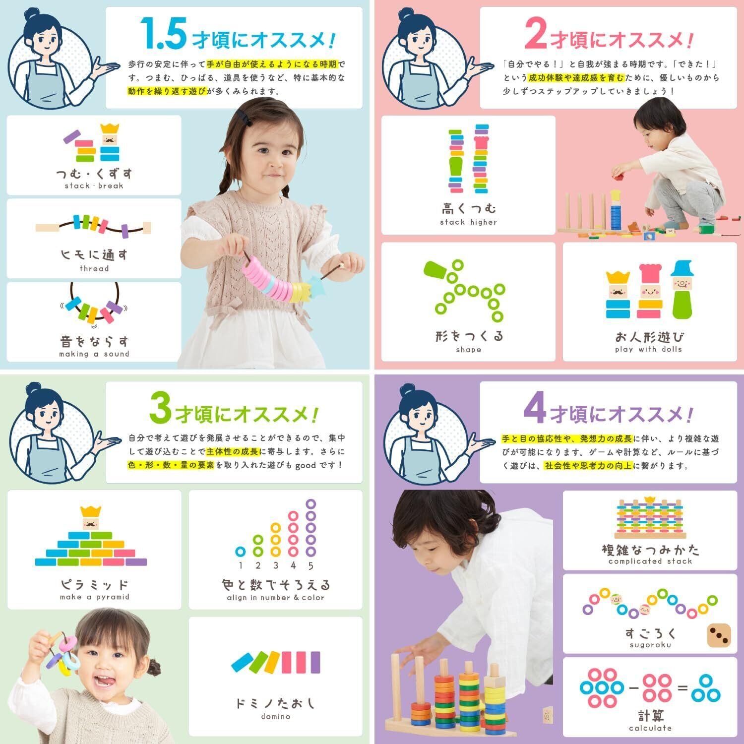【商品詳細】どこか気品あふれる印象のレトロ。ヨーロッパ玩具のようなはっきりとした色合いで、お子様の色の識別・学習に最適です。