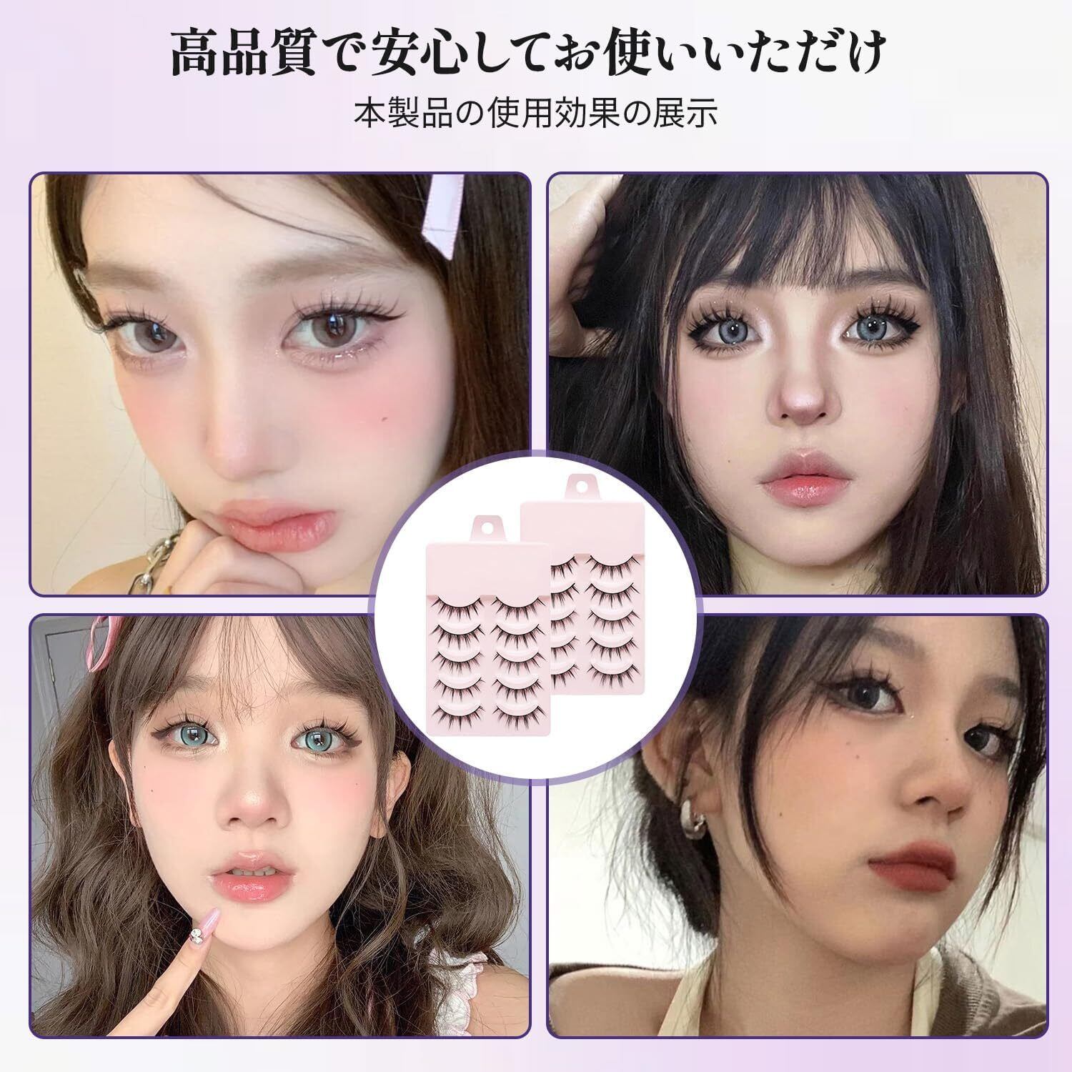 Kaguta-つけまつ毛-10組セット 2パック入り つけまつ毛 ナチュラル目元 009小悪魔スタイル 透明バンド 付け心地軽い くっきりとした束状効果 メイクアップ簡単 人気 日常 コスプレ