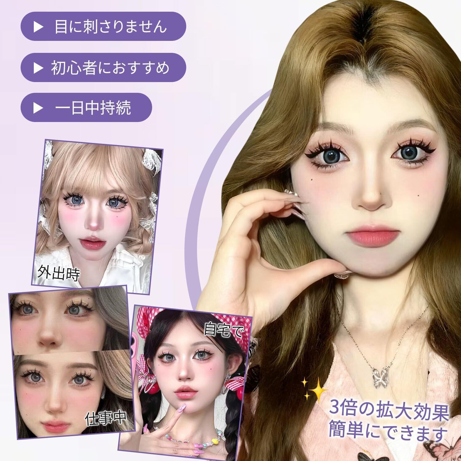 【漫画少女のような魅力的な瞳へ】 人気漫画のヒロインを彷彿とさせる「漫画目」効果で、大きくて輝く瞳に。つけまつ毛 人気のマンガラッシュスタイルは、コスプレやアニメイベントはもちろん、日常使いでもファンタジーな魅力を添えます。